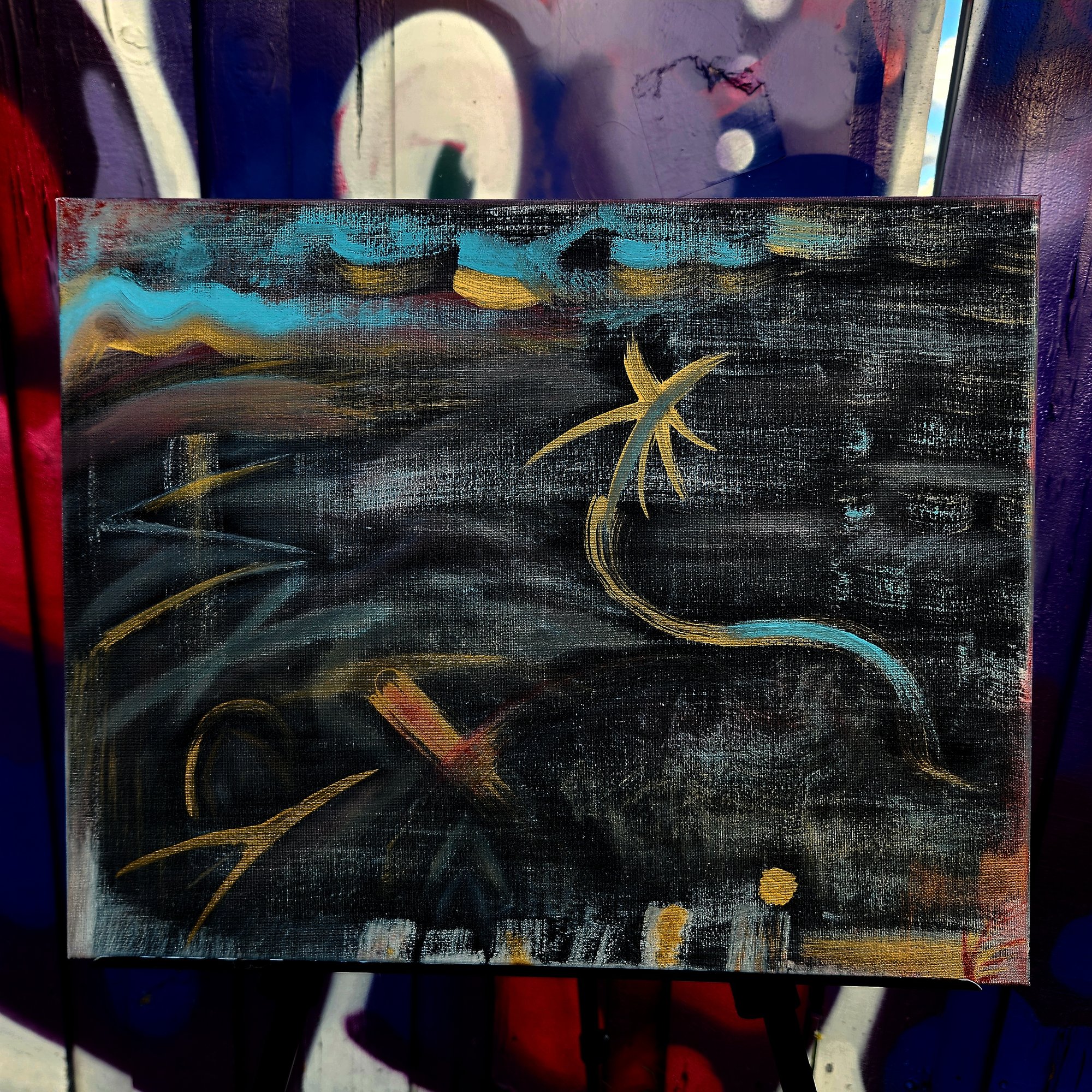 The Midnight Sky art piece was made with oil/acrylic mix.